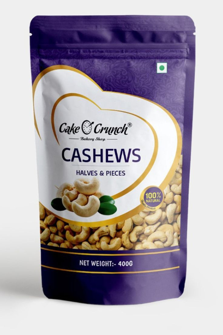 “Cake Crunch Cashews (Halves & Pieces) are 100% natural and perfect for cooking, baking, or snacking. Premium quality with rich taste and healthy fats. Net Weight: 400g.”